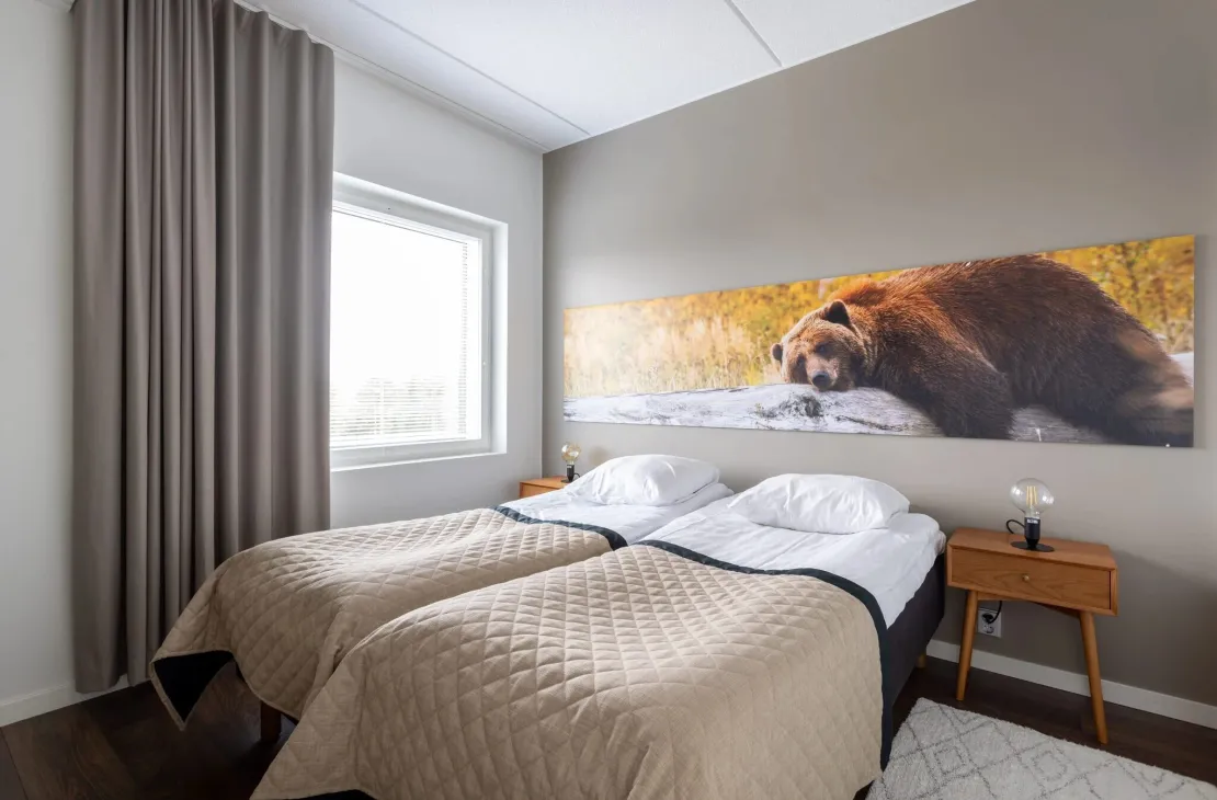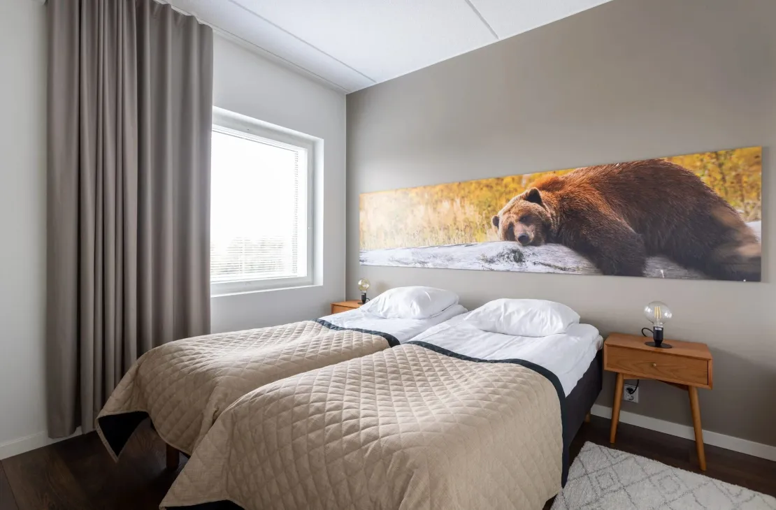 2 Schlafzimmer; 1 Zweibettzimmer und 1 Zimmer mit Etagenbett