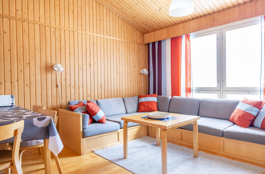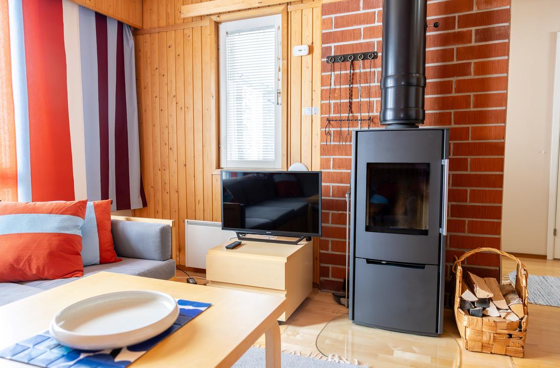 L'appartamento per le vacanze, costruito nel 1987, è dotato di una camera da letto e di una cucina-soggiorno open space con un nuovo camino che costituisce il fulcro della stanza.