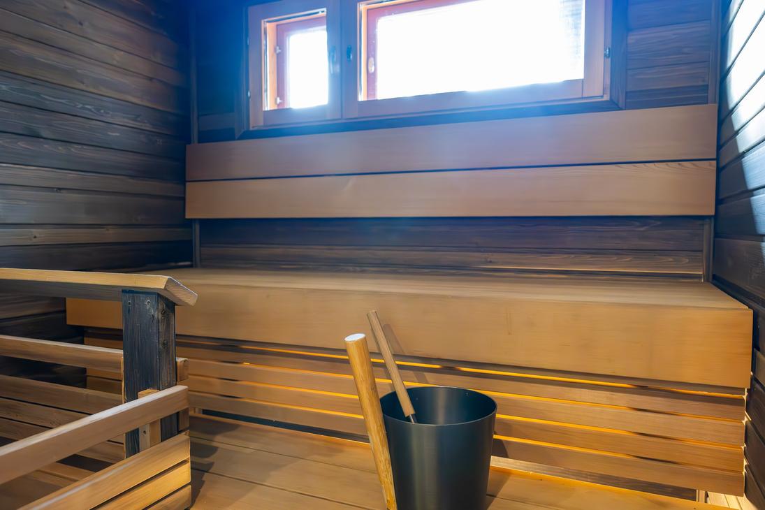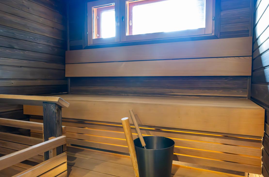 katoksessa on pieni huoneistokohtainen varasto ja huoltorakennuksessa on suksienvoitelutila.