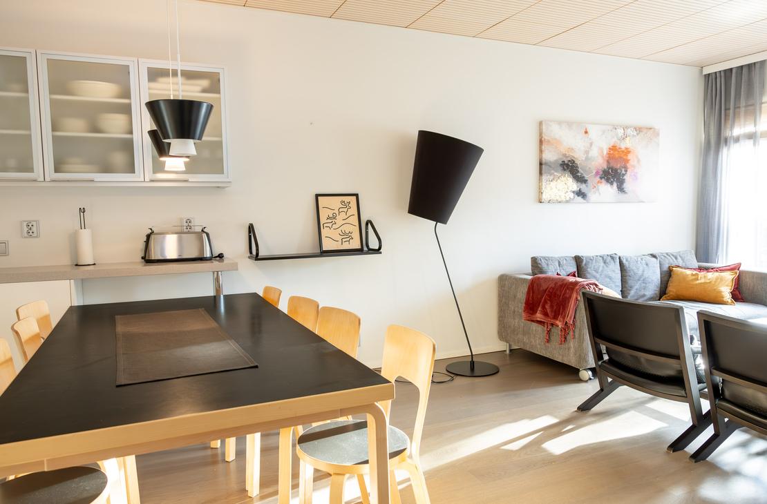 Olohuoneen sohva avattavissa tarvittaessa 1-2 lapselle.