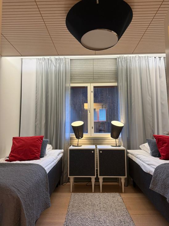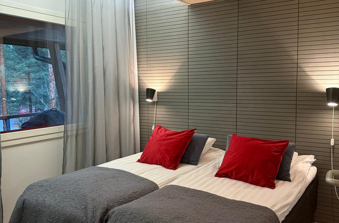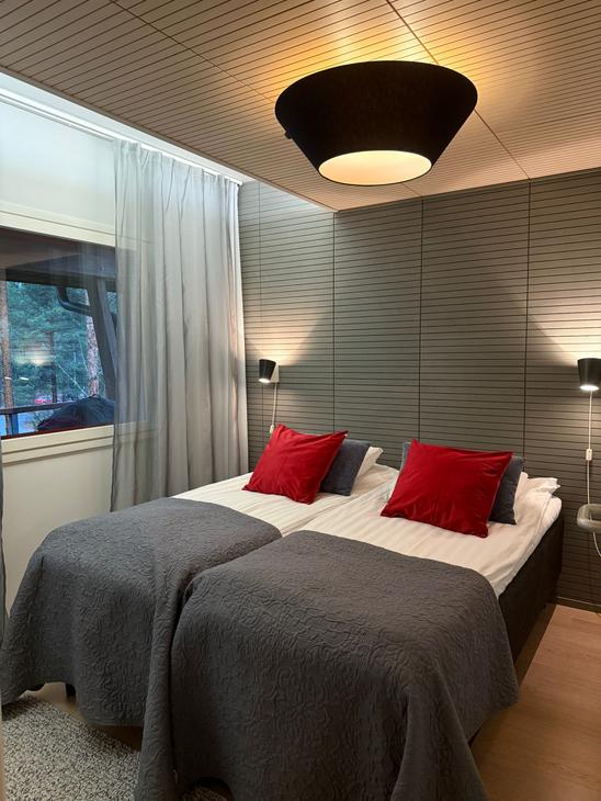 3 makuuhuonetta, kaksi huonetta erilliset sängyt ja yksi huone parisängyllä.