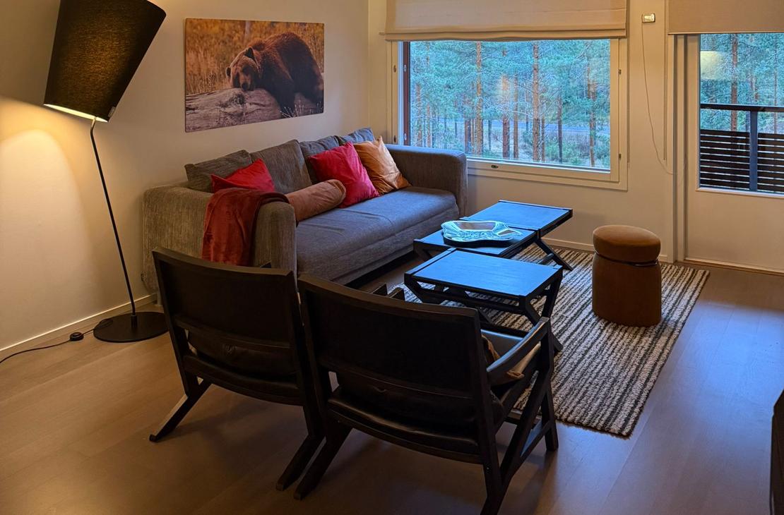 Olohuoneen sohva avattavissa tarvittaessa 1-2 lapselle.