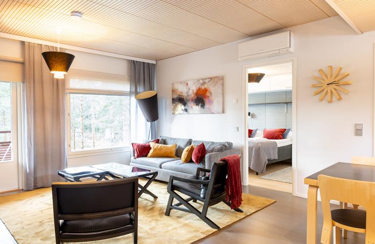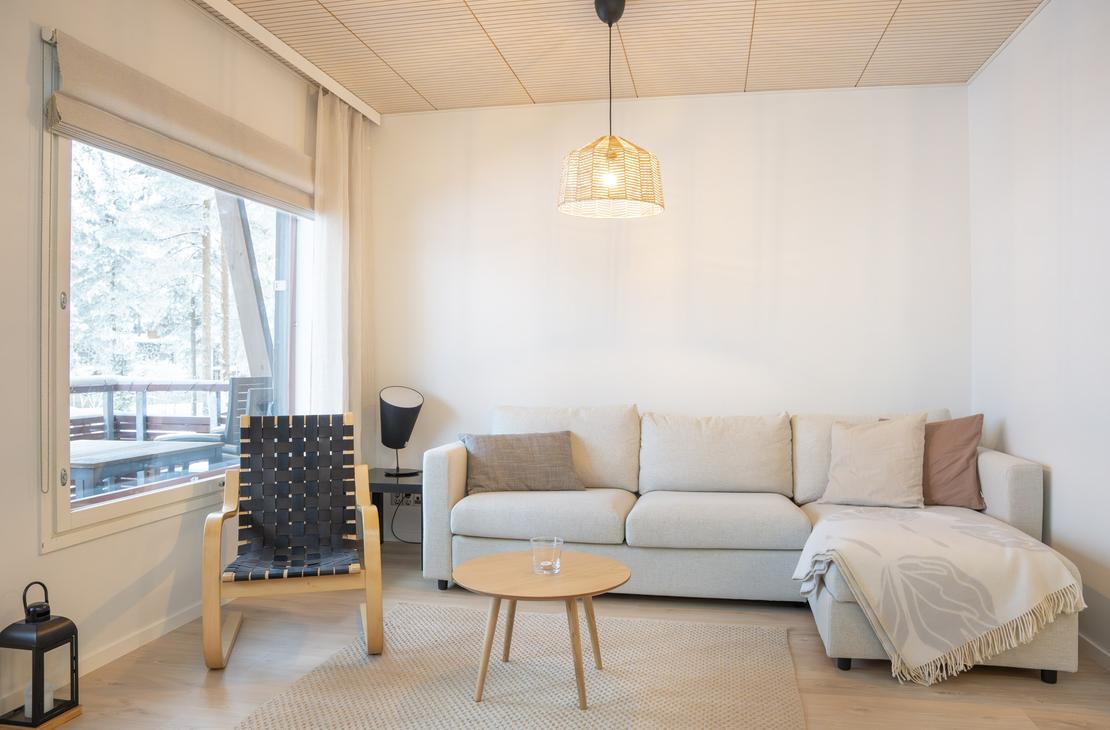 Olohuoneen sohva avattavissa tarvittaessa 1-2 henkilölle.