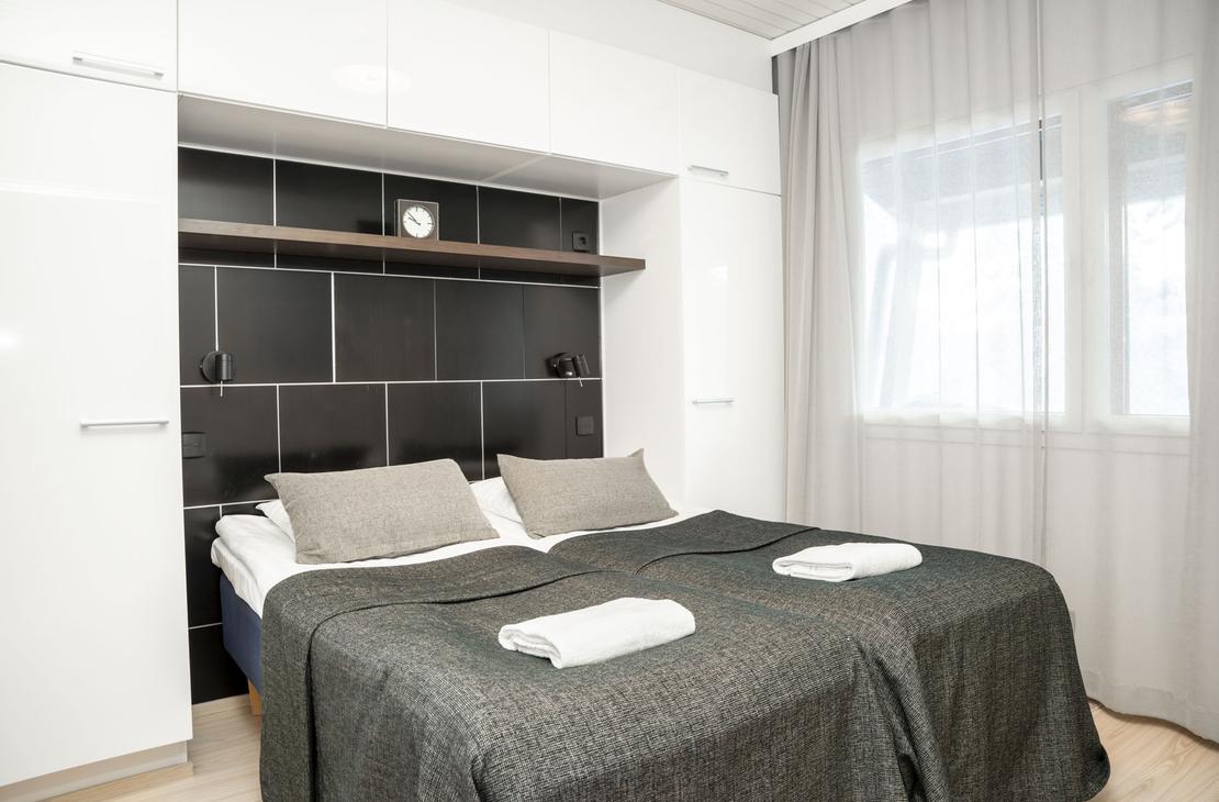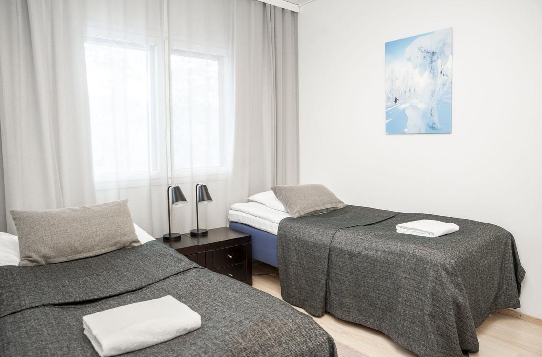 2 makuuhuonetta, twin-parisänky ja kaksi erillistä sänkyä.