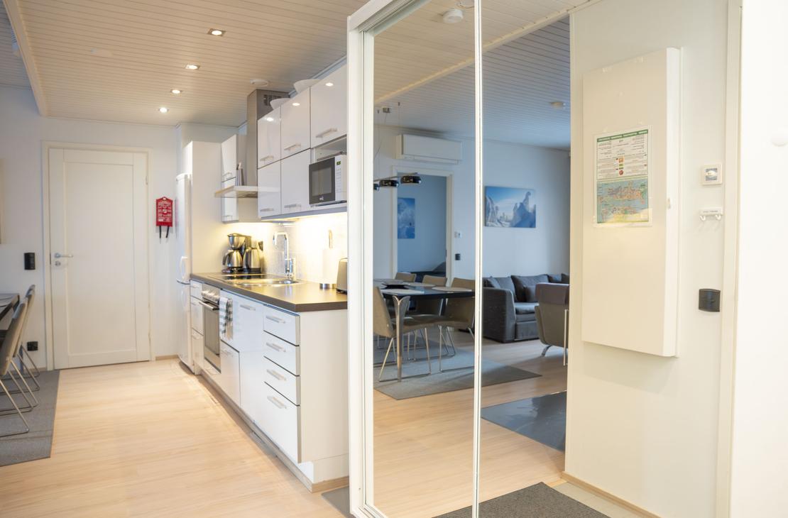 Lomahuoneisto on rakennettu vuonna 2007. Kaksi makuuhuonetta ja avara olohuone, joka on yhteydessä tupakeittiöön, jossa on tilaa ruuanlaittoon ja nauttimiseen.